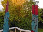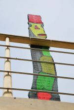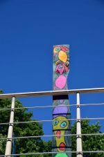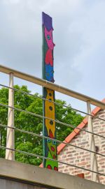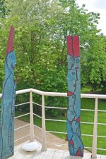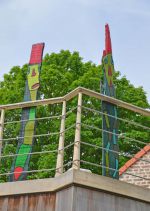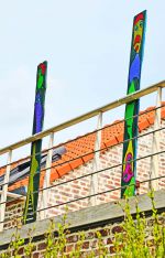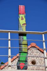 A Honfleur, au détour d’une ruelle, un portail aux couleurs de l’arc-en-ciel, une girafe au très long cou … « La Forge » (ancienne forge) de Florence Marie. Un univers fantastique fait de symboles, de figures fantasmagoriques, de couleurs, de dérision, de tendresse, de rires.