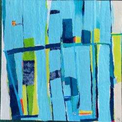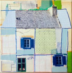 Elle utilise des fragments de papier qu’elle peint préalablement, déchire, colle, assemble, superpose, recouvre, … jouant avec les formes et les couleurs.  Elle construit et déconstruit avec le papier comme elle sculptait autrefois en ajoutant et en supprimant de la matière et tout cela raconte une histoire.